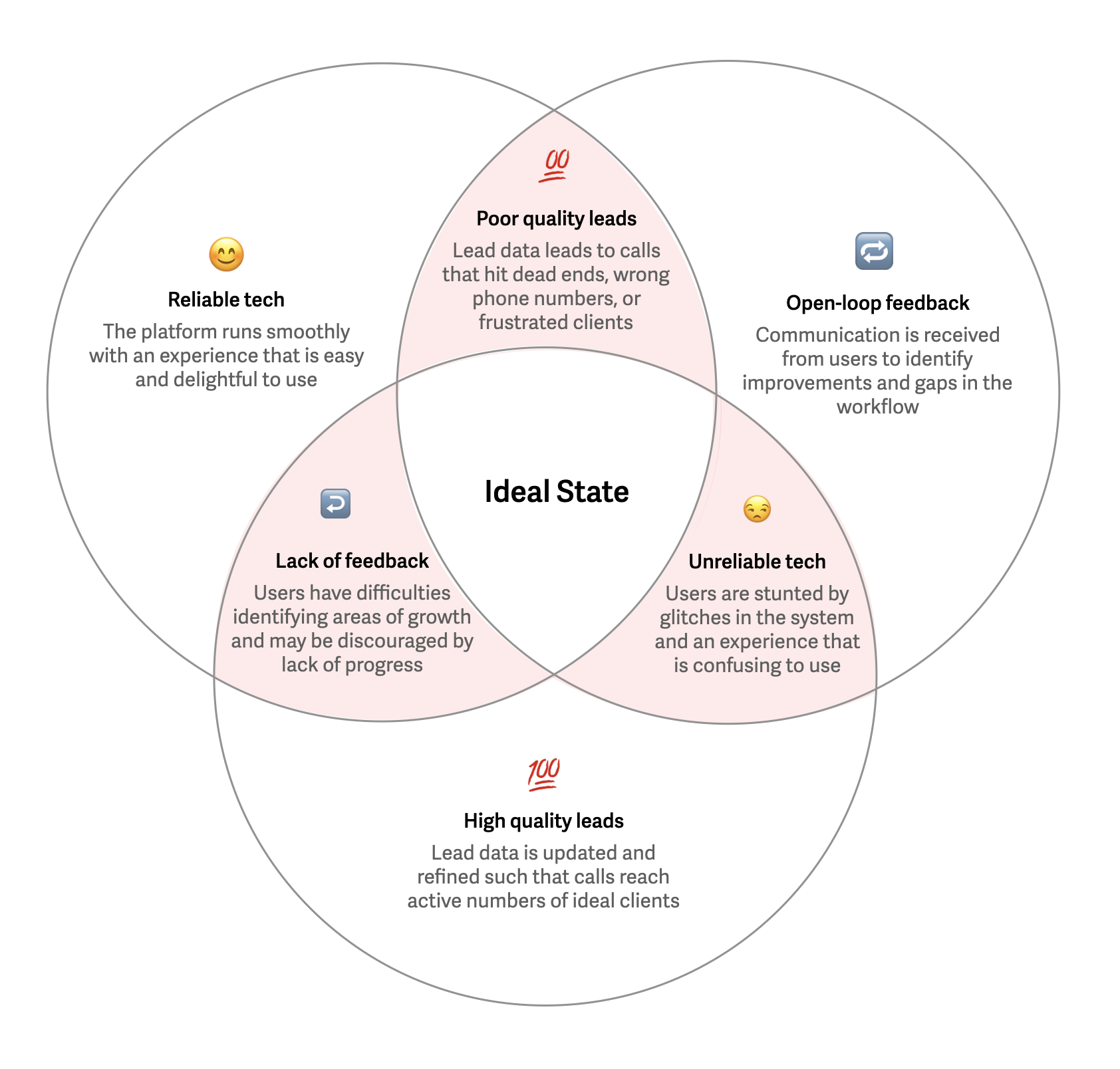 We shipped the core platform in 4 months. A dedicated Slack channel with consultants became ongoing research, driving features like self-sourced leads and refined call flows. Support requests dropped, and the platform scaled to 500+ active users - validation that surfacing the right information at the right moment made a difference.
